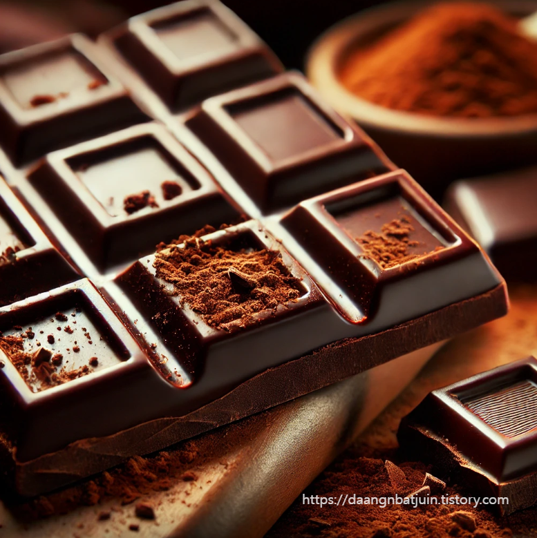 - 다크초콜릿에는 세로토닌(행복 호르몬) 분비를 촉진하는 성분이 있다.