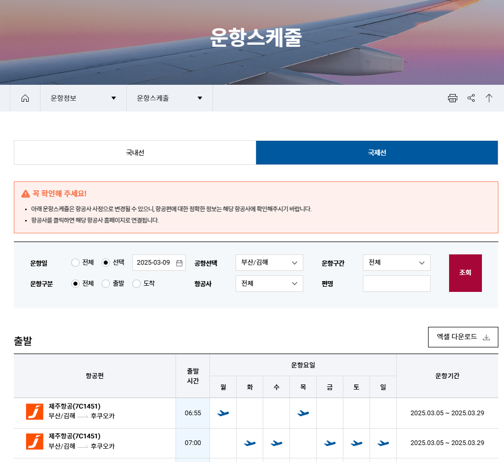 여행 계획 시 해당 항공사의 공식 웹사이트나 김해국제공항의 '출발/도착' 페이지를 통해