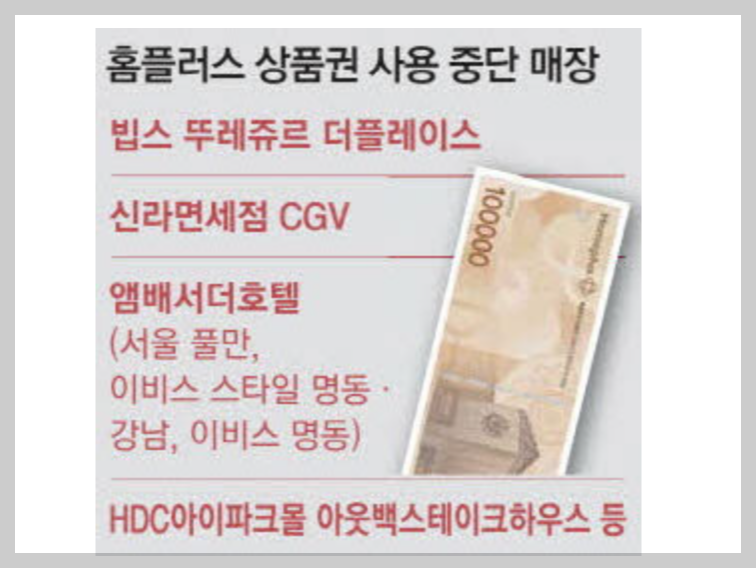 (뚜레쥬르·빕스·더플레이스) 등 여러 제휴처에서 홈플러스 상품권 결제를 중단하거나