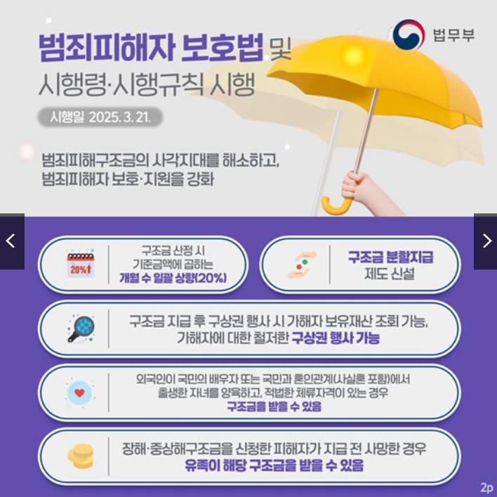 범죄피해자에 대한 직접 지원이 확대됩니다.